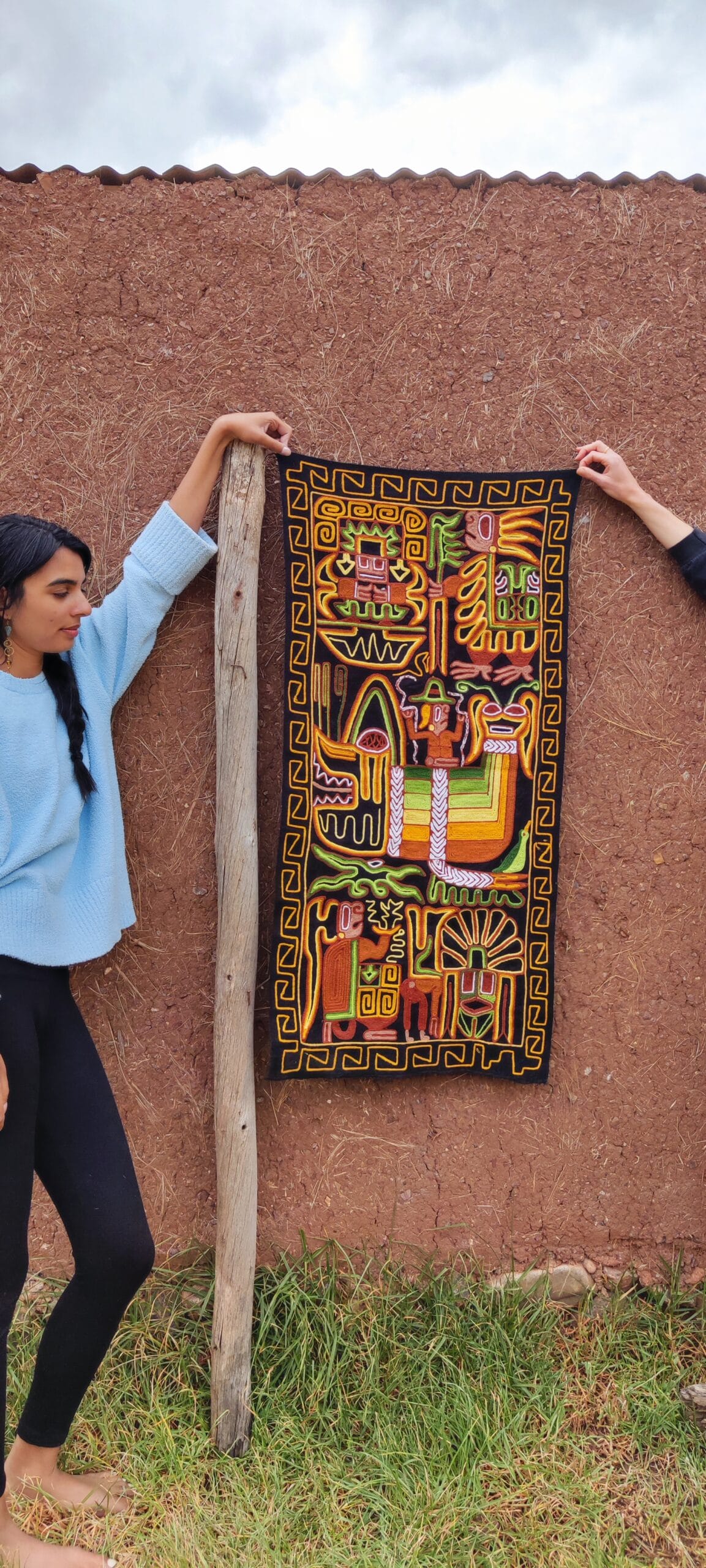 הכניסו הביתה את הקסם של הרי האנדים עם אריג קיר בעבודת יד, שיוצר על ידי אמני שבטי קצ’ואה בפרו. האריג עשוי מבד איכותי בגוונים חמים על רקע שחור, המעוטר בדוגמת אנשים מתרבות האינקה העתיקה. כל פרט ביצירה נארג בקפידה על ידי אמנים מקומיים, בשיטות מסורתיות שהועברו מדור לדור, המשלבות דיוק אומנותי עם עומק תרבותי והיסטורי. הצבעים הניטרליים משתלבים בקלות עם כל סגנון עיצוב – מהכפרי והחמים ועד למודרני והמינימליסטי – ומוסיפים לחלל תחושה של אותנטיות, חיבור להיסטוריה ואווירה ייחודית.