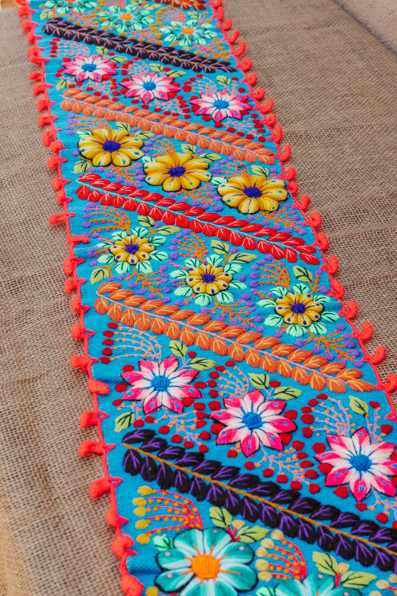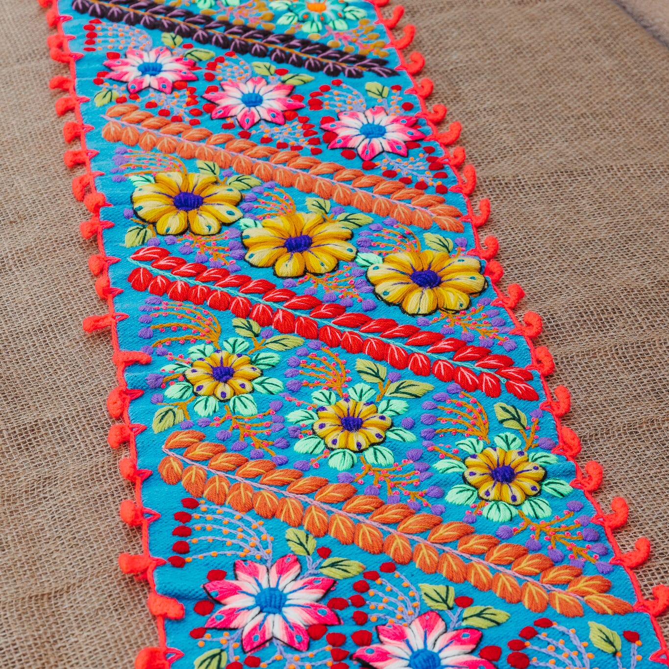 אומנות רקמה פרחונית/ ראנר לשולחן
